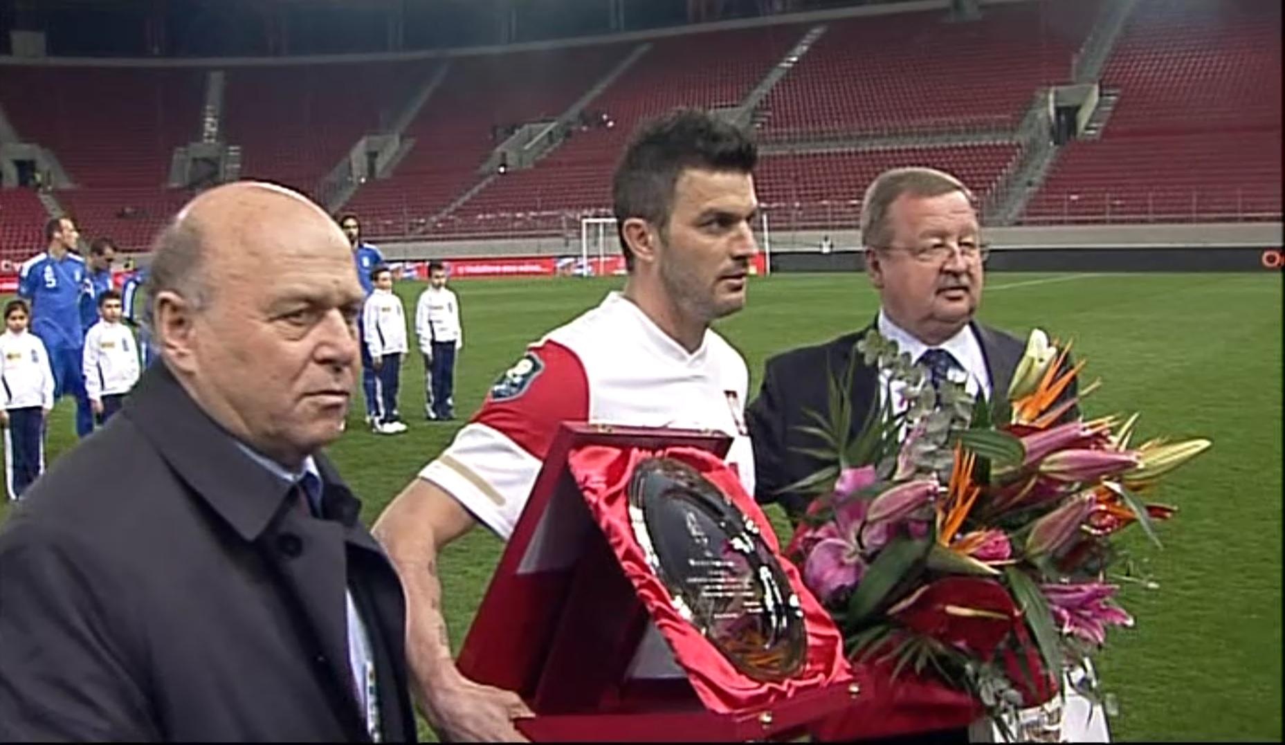 102. mecze w narodowych barwach były wówczas absolutnym rekordem w historii występów w reprezentacji Polski. Kapitan biało-czerwonych wyprzedził takie sławy, jak Grzegorz Lato (100) czy Kazimierz Deyna (97). Jednak dla popularnego „Żewłaka” spotkanie z Grecją miało słodko-gorzki smak. Słodki, bo zagrał na stadionie byłego klubu Olympiakosu Pireus. Gorzki, bo był to jego ostatni występ w drużynie narodowej. Trochę bardziej z przymusu, aniżeli z powodu lepszych kandydatów do gry na środku defensywy. Michał Żewłakow popadł bowiem w konflikt z selekcjonerem Franciszkiem Smudą po zgrupowaniu w Ameryce Północnej, kiedy to w samolocie wracającym do Warszawy miał spożywać wino wraz z Arturem Borucem. Tym samym obaj panowie mogli zapomnieć o grze na Euro 2012. W 102 występach w reprezentacji Żewłakow zdobył 3 bramki.