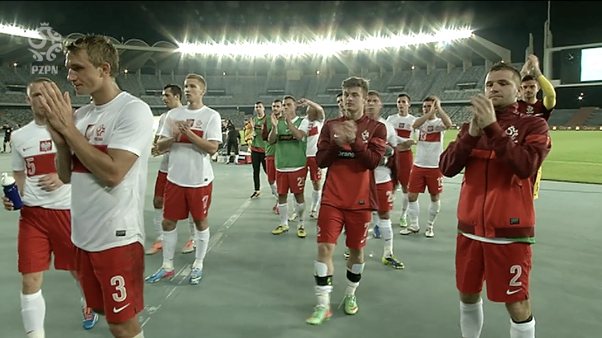 Reprezentacja Polski przed meczem z Norwegią. W górnym rzędzie od lewej: Jakub Wawrzyniak (kapitan), Jakub Rzeźniczak, Rafał Leszczyński, Tomasz Jodłowiec, Maciej Wilusz, Łukasz Teodorczyk. W dolnym rzędzie od lewej: Bartosz Bereszyński, Michał Kucharczyk, Karol Linetty, Tomasz Brzyski, Michał Masłowski.
