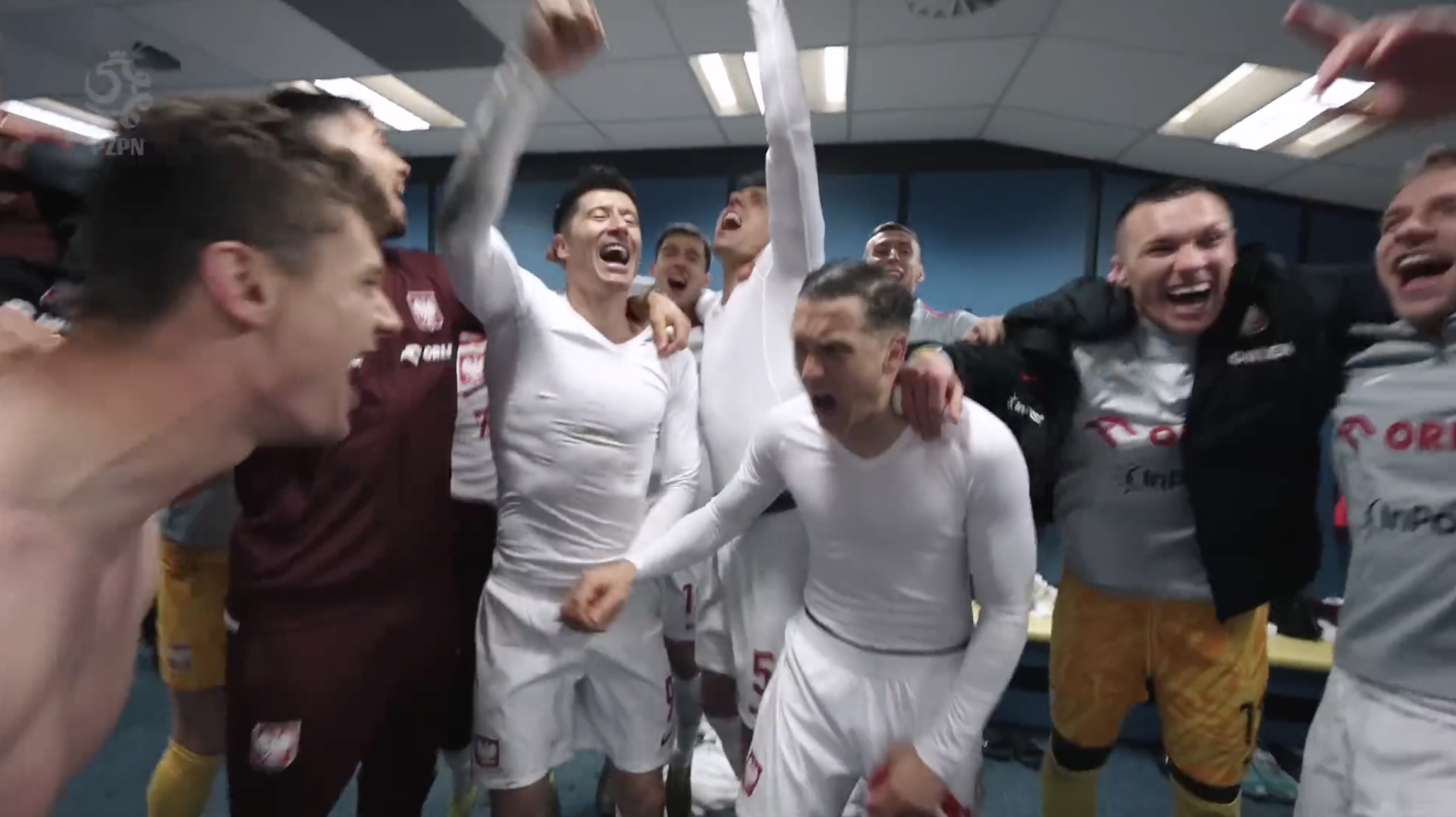 Reprezentacja Polski przed meczem z Walią. W górnym rzędzie od lewej: Jakub Kiwior, Karol Świderski, Jakub Piotrowski, Jan Bednarek, Wojciech Szczęsny, Paweł Dawidowicz. W dolnym rzędzie od lewej: Bartosz Slisz, Nicola Zalewski, Piotr Zieliński, Robert Lewandowski (kapitan), Przemysław Frankowski.