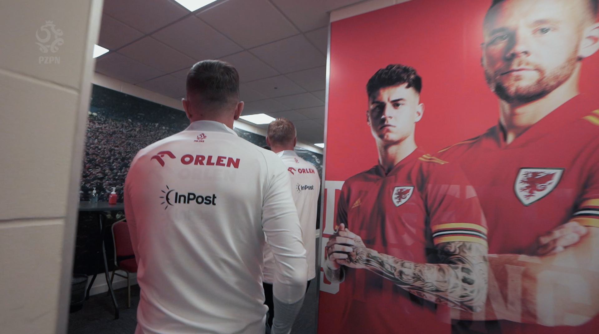 Reprezentacja Polski przed meczem z Walią w Lidze Narodów. W górnym rzędzie od lewej: Grzegorz Krychowiak, Jakub Kiwior, Jan Bednarek, Kamil Glik, Wojciech Szczęsny, Szymon Żurkowski. W dolnym rzędzie od lewej: Bartosz Bereszyński, Karol Świderski, Robert Lewandowski (kapitan), Nicola Zalewski, Piotr Zieliński.
